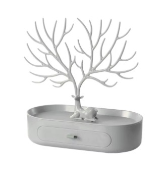 Juveeliriiul on ilus ja praktiline, mugav ese kaunite ehete hoiustamiseks. Materjal: plastik Värv: hall Toote mõõdud: 24,5cm* 12,5cm*26 cm. Hoidikul on väike sahtel väiksemate esemete jaoks.