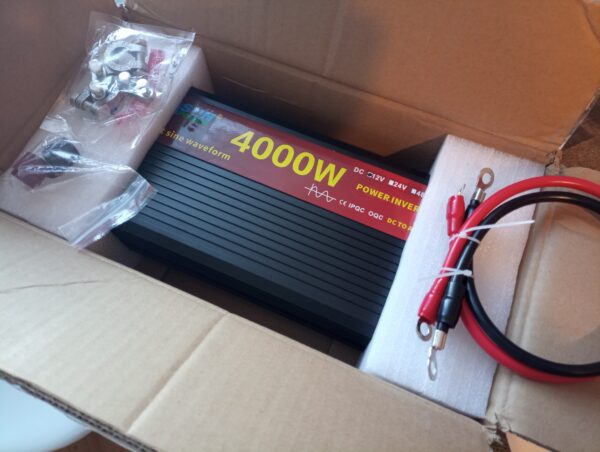 Muundur võtab 12-voldise alalispinge ja muudab selle 230-voldiseks vahelduvpingeks.