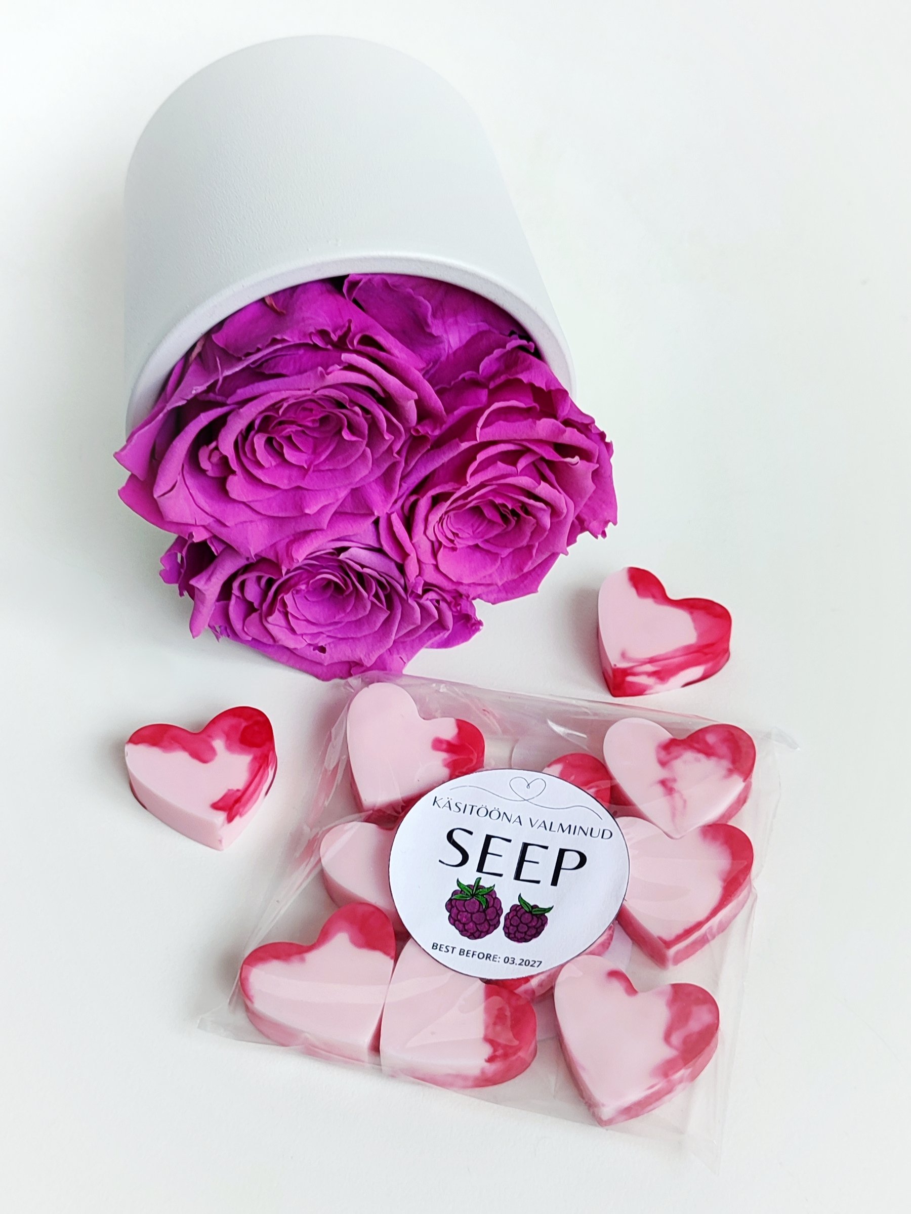 Käsitööna valminud magusa vaarika lõhnaga seebid