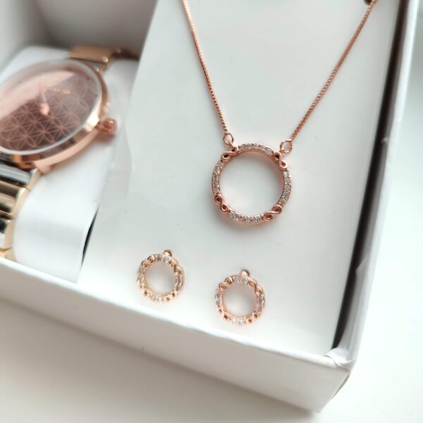 Komplekti kuuluvad: käekell, kaelakee ja kõrvarõngad.