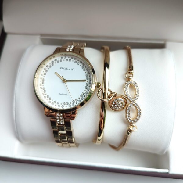 Komplektid on kenasti sobitatud ja neid saab kanda koos või eraldi. Ehted on valmistatud ehete valmistamiseks mõeldud kvaliteetsest roostevabast terasest. Kella mineraalklaas on kriimustuskindel, mis tagab ehete vastupidavuse.