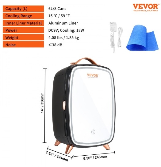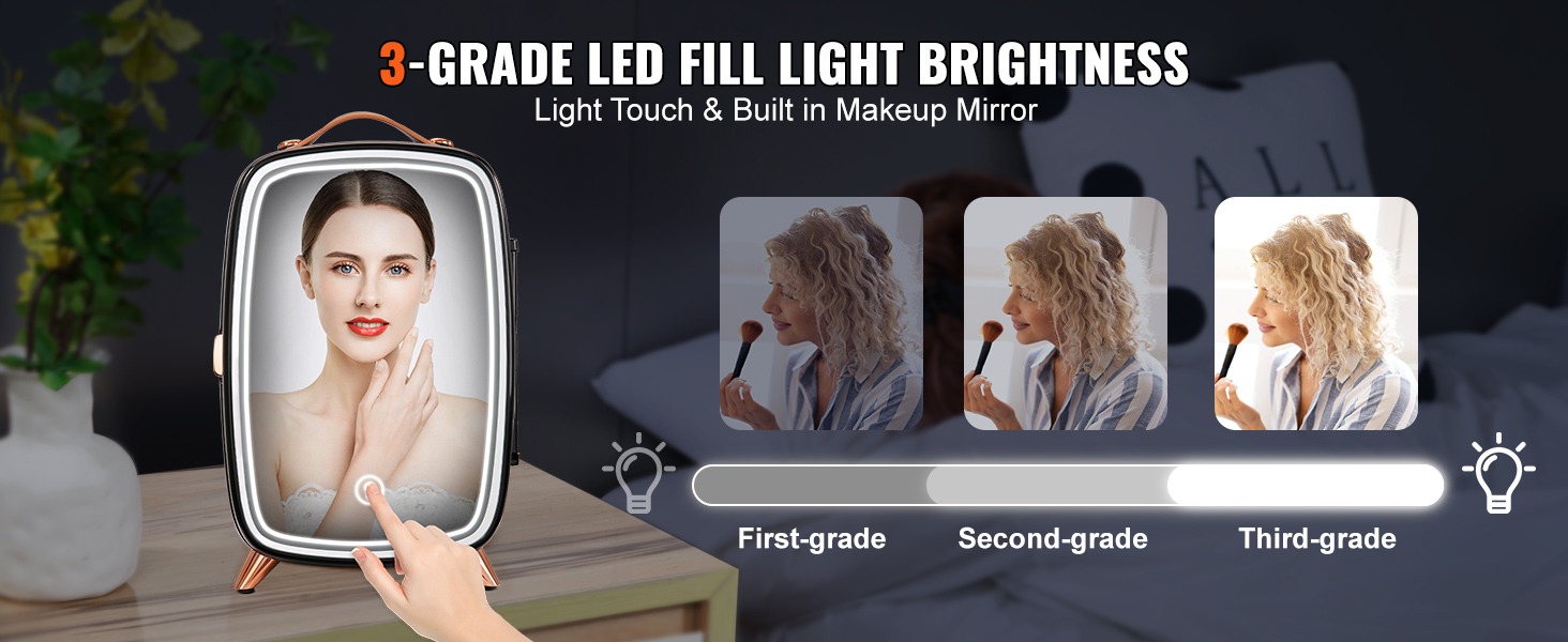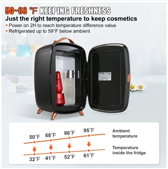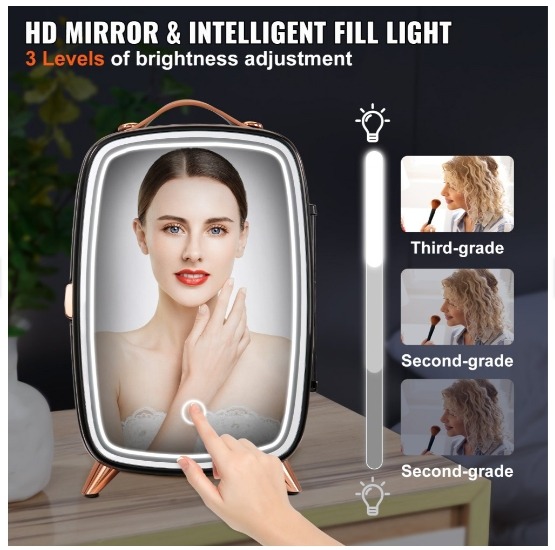 Spetsiaalselt ilutarvikute jaoks mõeldud külmik: HD meigipeegli ja LED-valgustite disain võimaldab reguleerida tulede heledust vastavalt ümbritsevale keskkonnale meigi ajal (3 reguleeritavat taset), et saavutada parim heledus ja luua täiuslik meik.