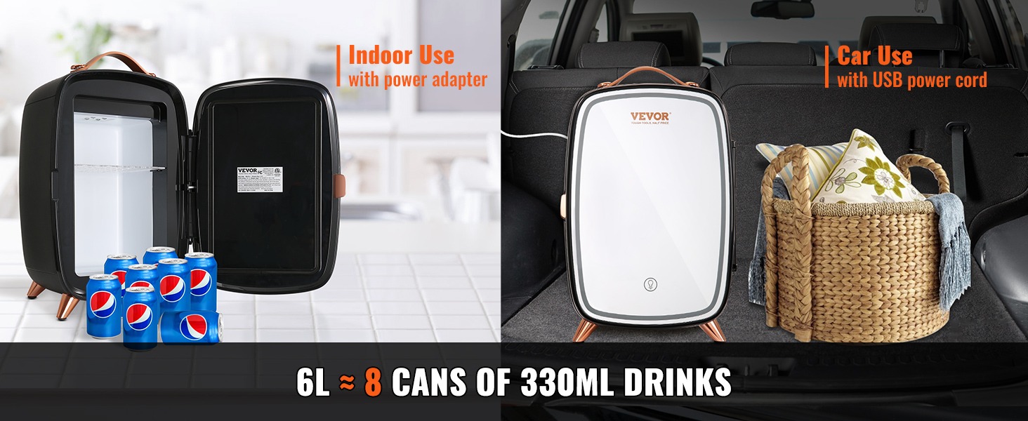 Mitmekülgne ja mugav: külmikuga on kaasas nii USB toitekaabel kui ka majapidamises kasutatav toiteadapter, mistõttu sobib see nii toas kui ka õues kasutamiseks.