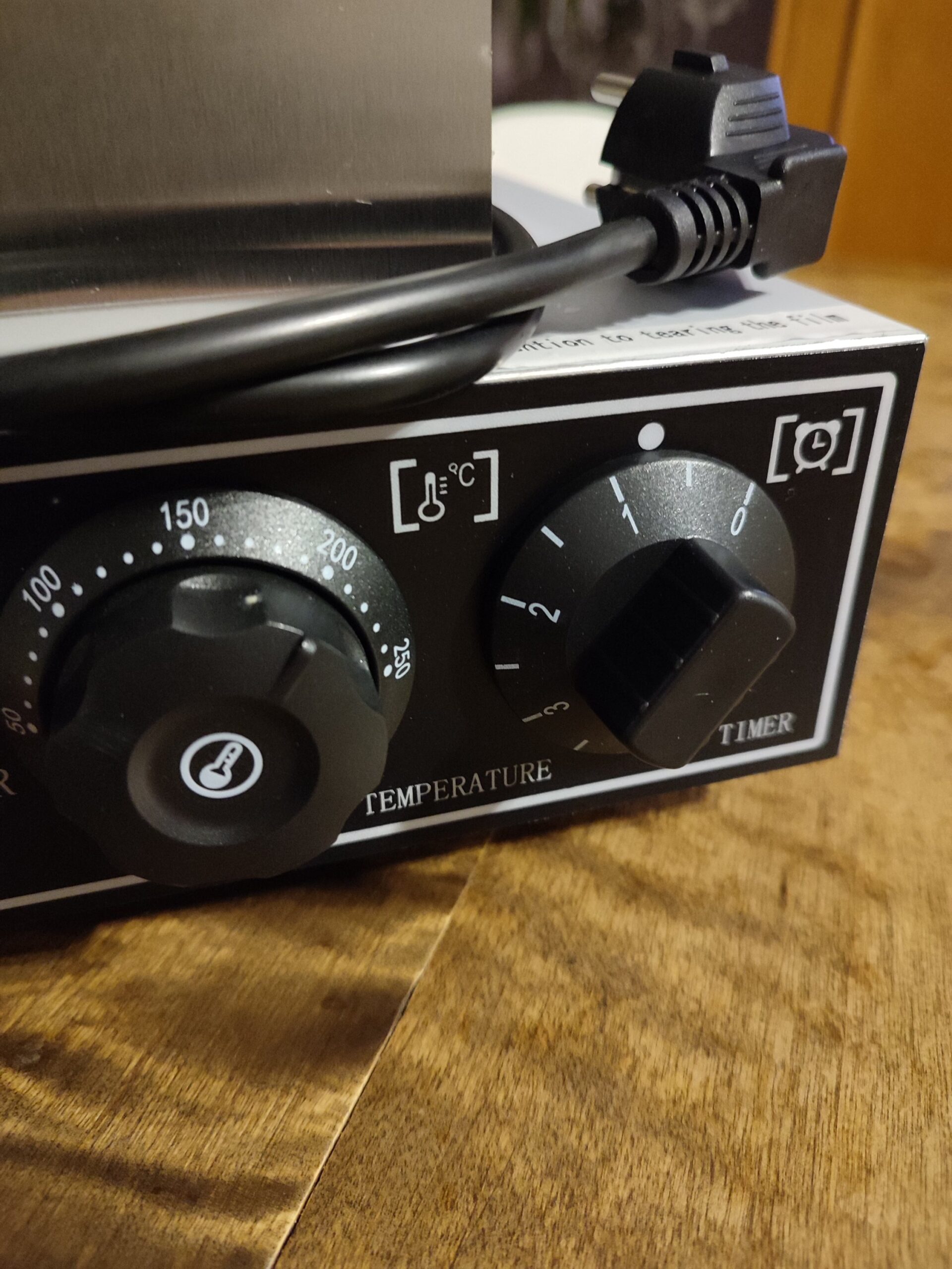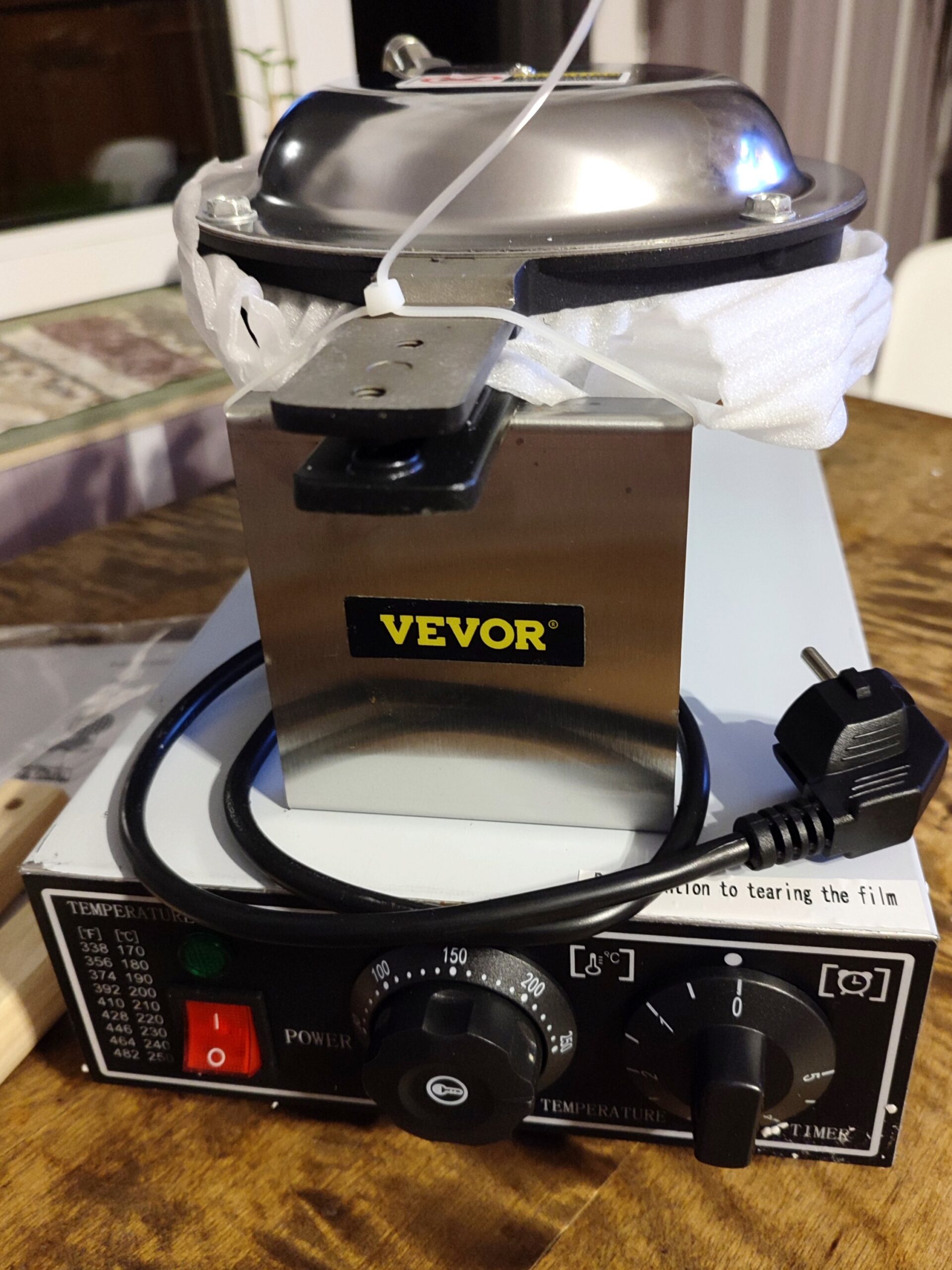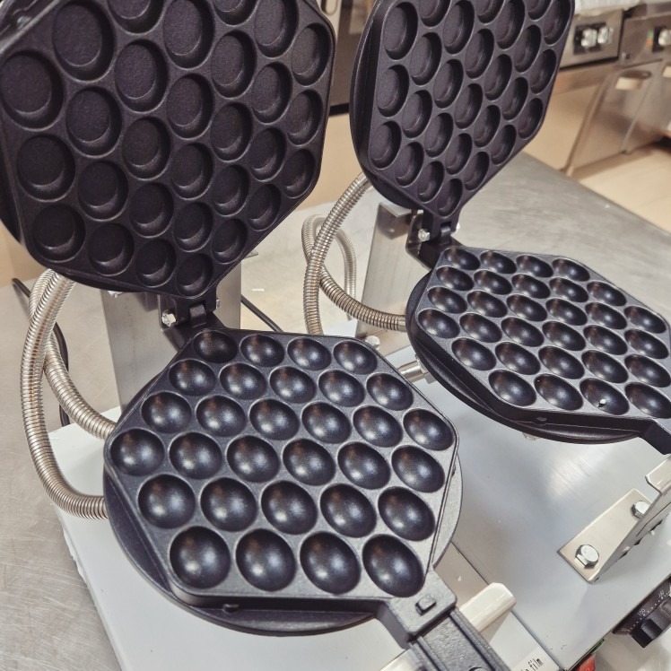 Mittenakkuva ja kergesti puhastatava pinnaga puidust käepidemetega mullivahvlite küpsetamise masin.