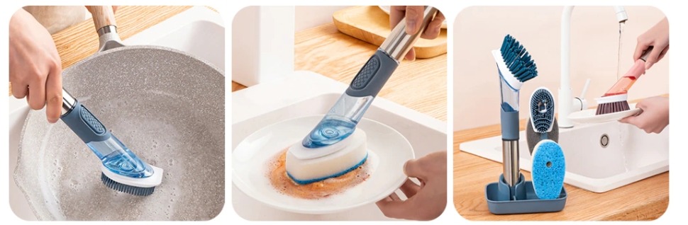 Pesuvahend käib käepideme sisse, nupule vajutades läheb vahend otse nuustikule/harjale.