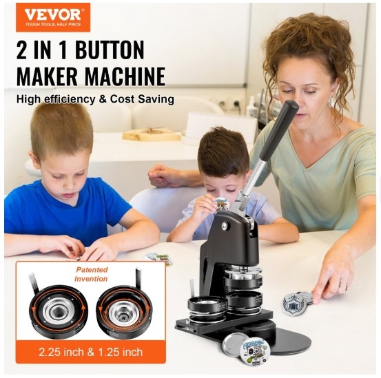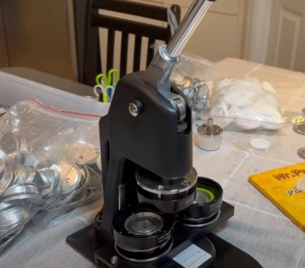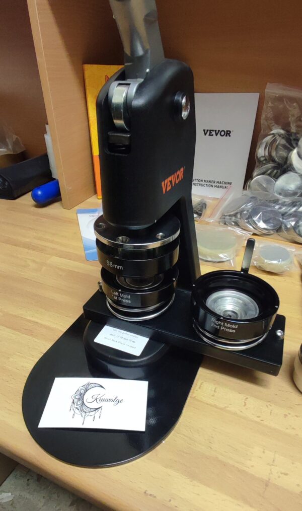 Põnev masin/press, millega valmistada omale meelepäraseid ja isikupäraseid rinnamärke.