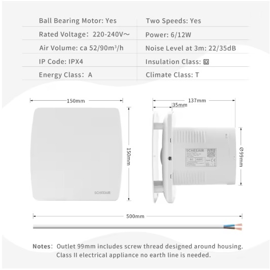 See on arenenud väljatõmbeventilaator nutikate funktsioonidega, mis sobib ideaalselt tõhusaks ventilatsiooniks vannitubades, köökides ja teistes niisketes ruumides. Ventilaator ühendab endas suurepärase jõudluse, stiilse disaini ja tipptasemel tehnoloogiad, pakkudes mugavat kasutamist.