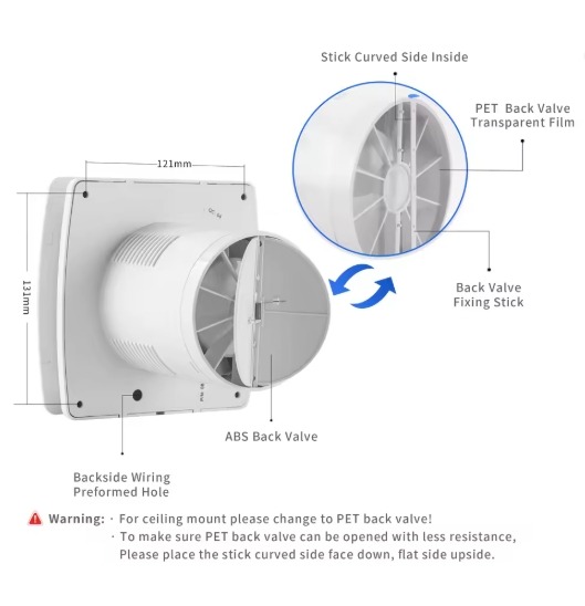 See on arenenud väljatõmbeventilaator nutikate funktsioonidega, mis sobib ideaalselt tõhusaks ventilatsiooniks vannitubades, köökides ja teistes niisketes ruumides. Ventilaator ühendab endas suurepärase jõudluse, stiilse disaini ja tipptasemel tehnoloogiad, pakkudes mugavat kasutamist.