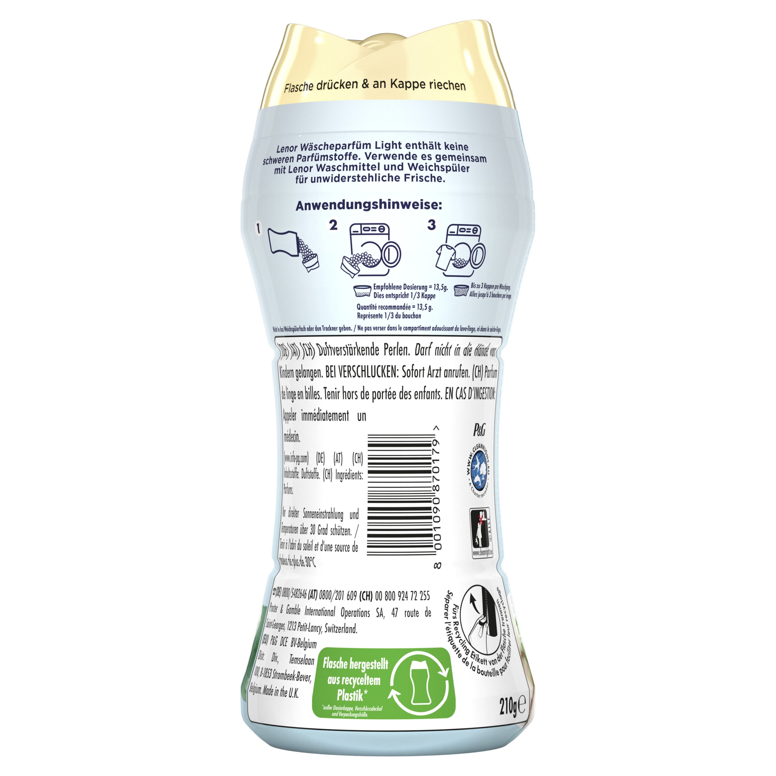 Kasutamine: Pange lõhnagraanulid pesumasina trumlisse.