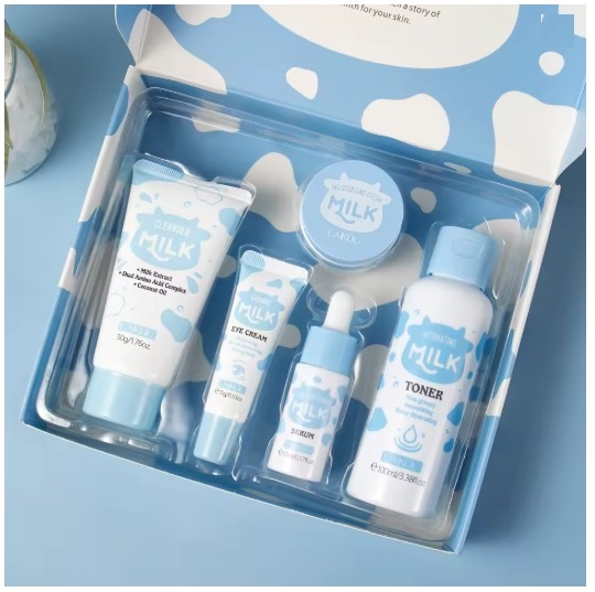 See 5-osaline piimapõhine komplekt niisutab sügavuti, samal ajal heledamaks muutes tuhmi nahka ja siludes tekstuuri. Ideaalne kuivale, väsinud või ebaühtlasele nahale – paljastage elastne ja seestpoolt särav jume!