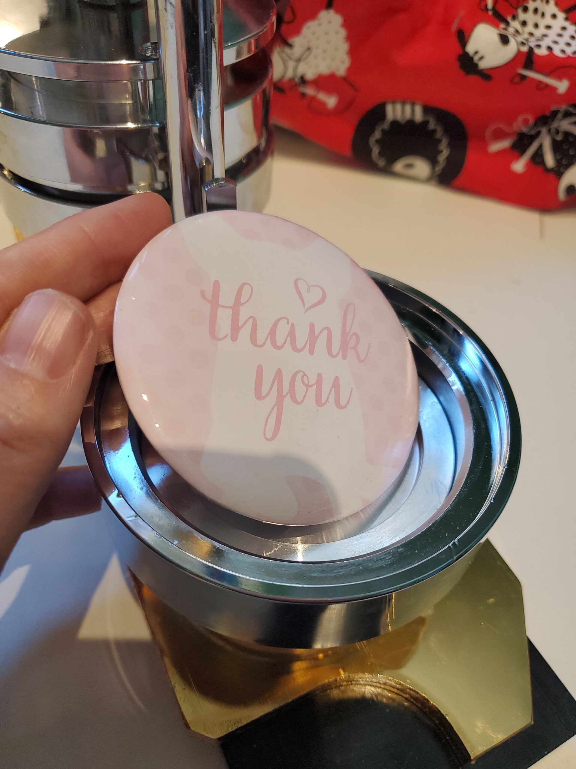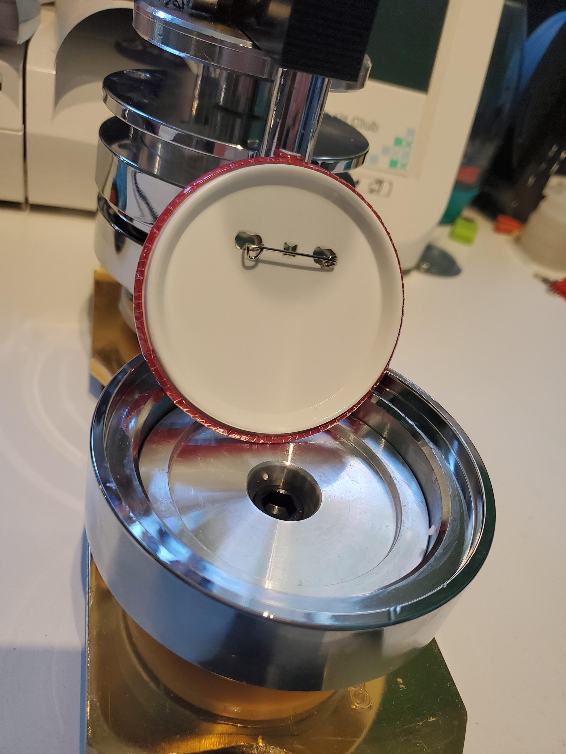 Põnev masin/press, millega valmistada omale meelepäraseid ja isikupäraseid rinnamärke.
